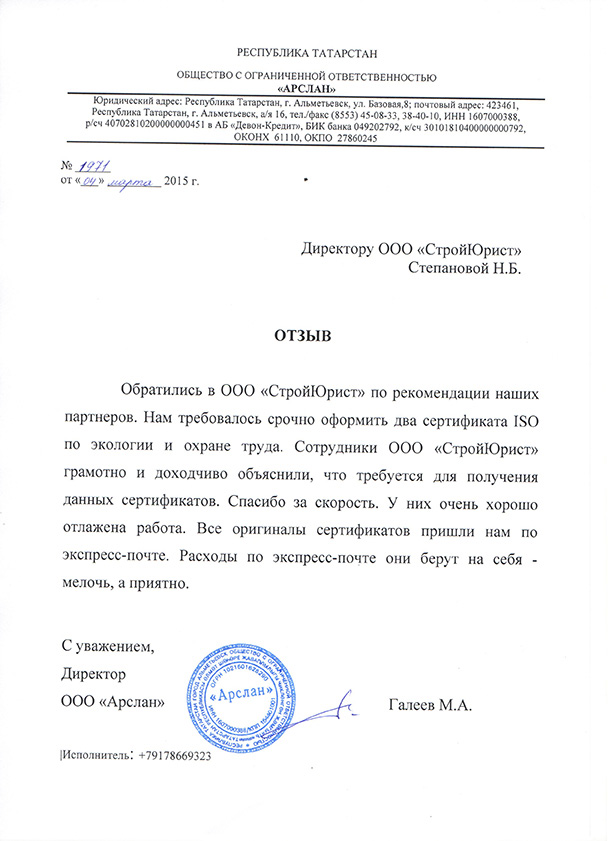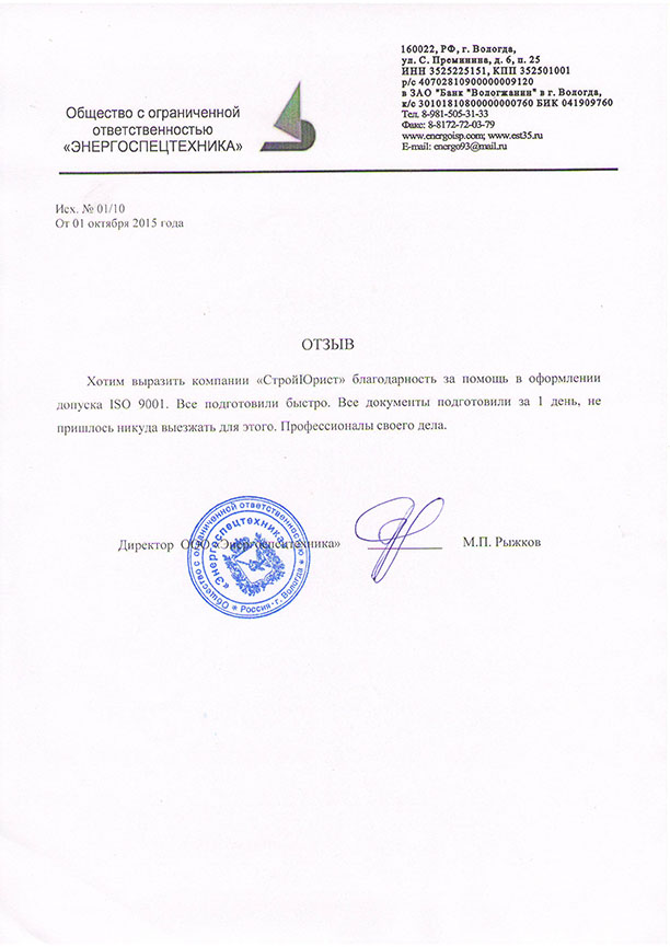 Отзывы клиентов "СтройЮрист" по ISO в Коломне