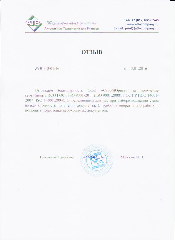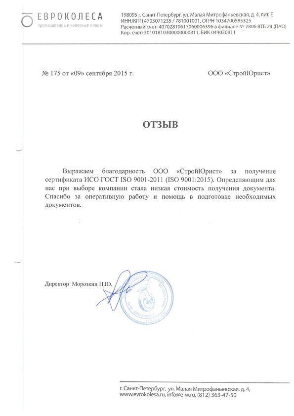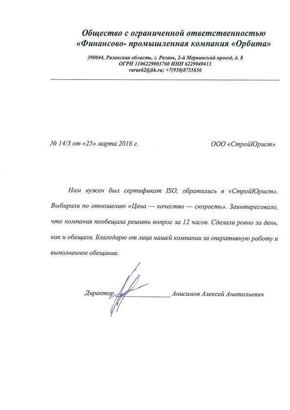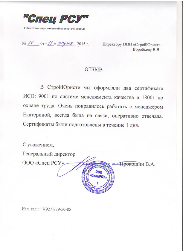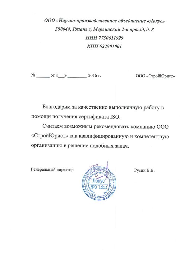 Отзывы клиентов "СтройЮрист" по ISO в Коломне