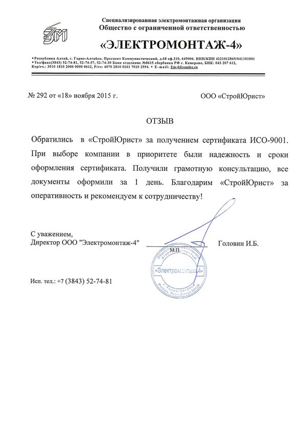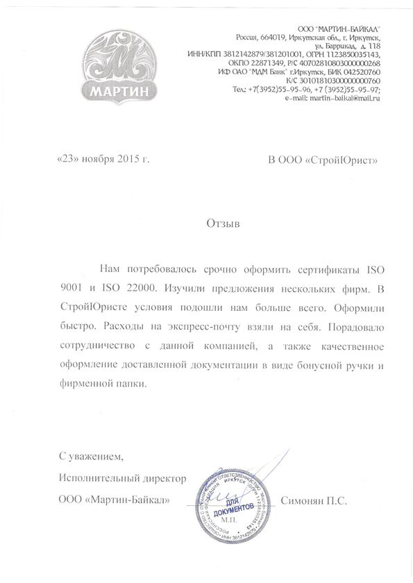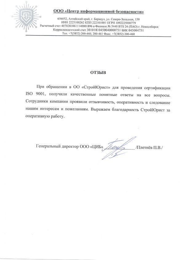 Отзывы клиентов "СтройЮрист" по ISO в Коломне