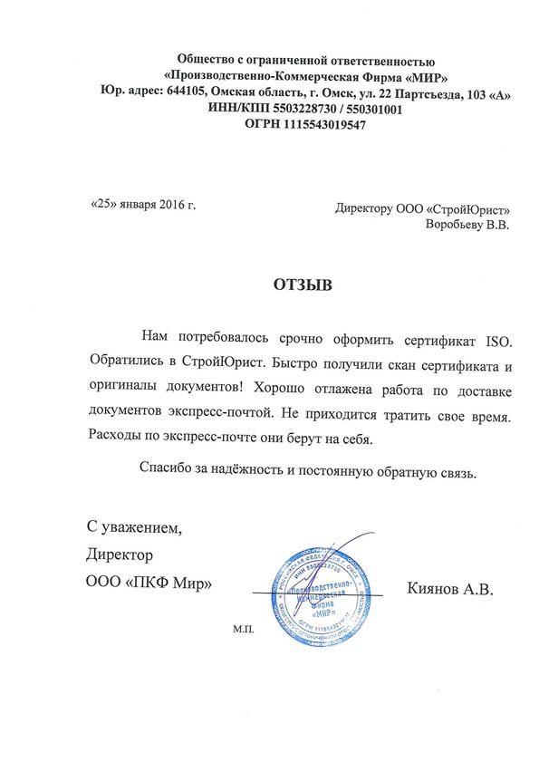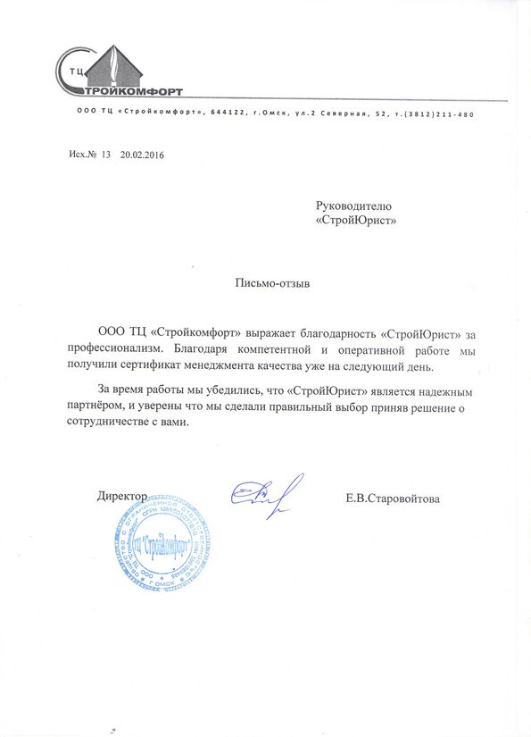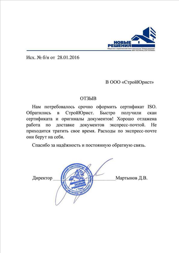 Отзывы клиентов "СтройЮрист" по ISO в Коломне