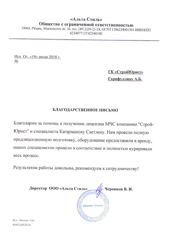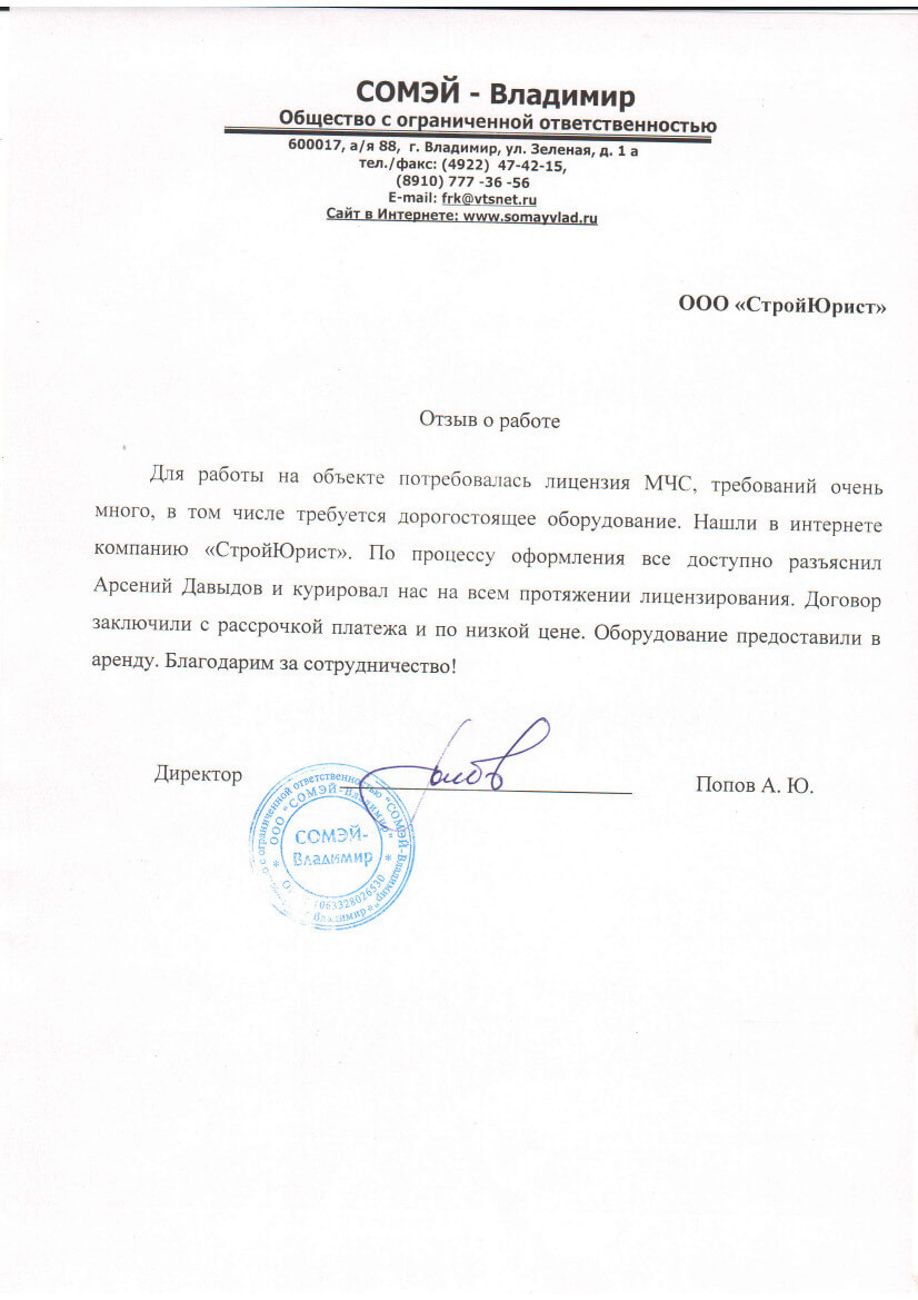 Отзывы клиентов "СтройЮрист" по лицензированию МЧС в Коломне