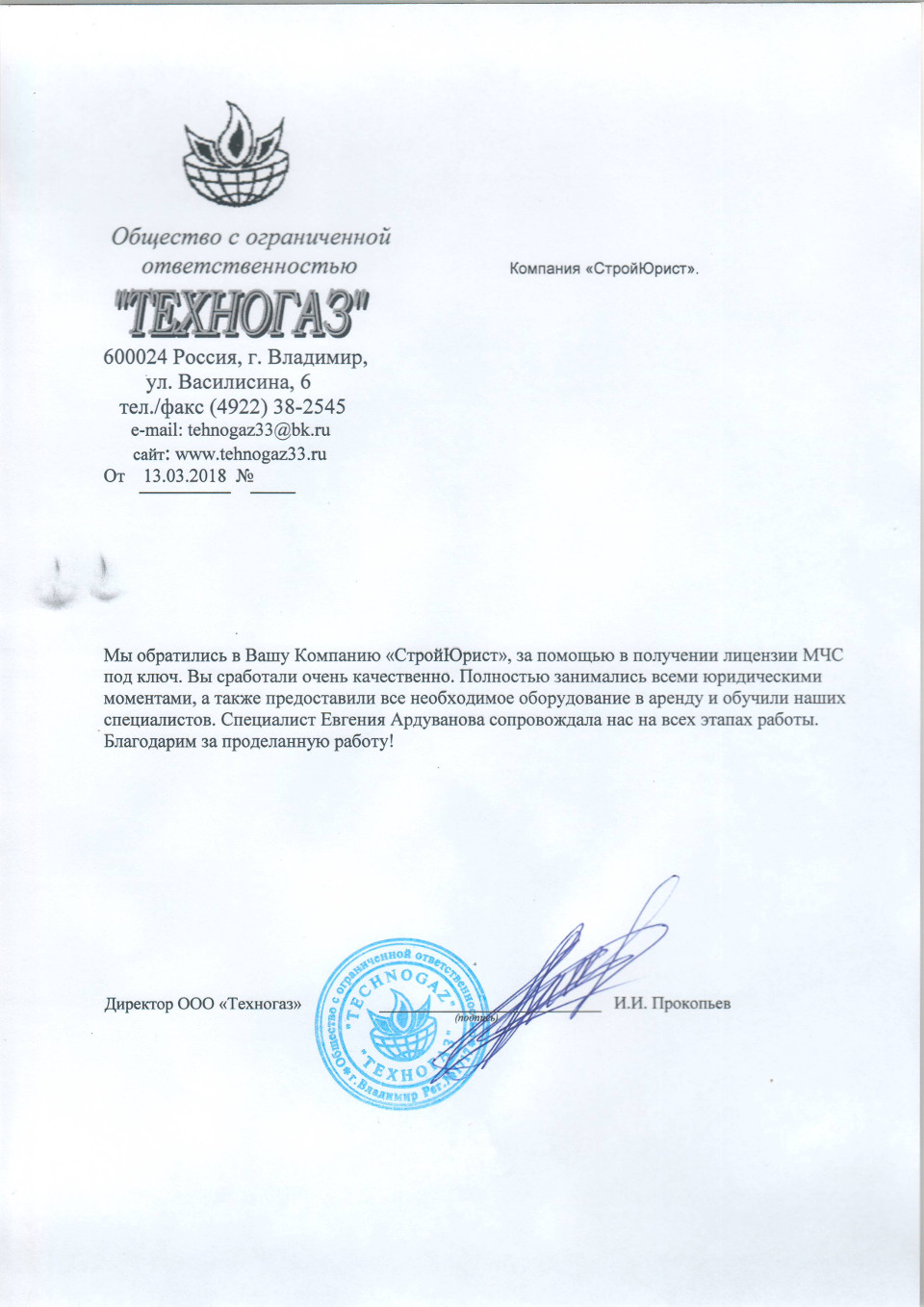 Отзывы клиентов "СтройЮрист" по лицензированию МЧС в Коломне