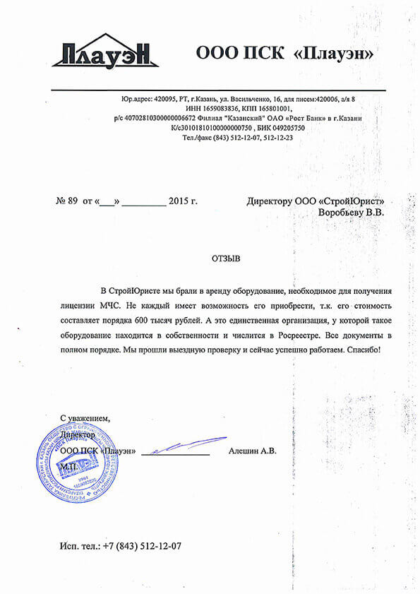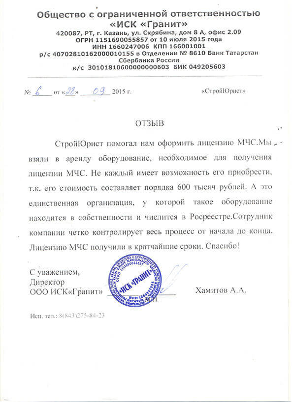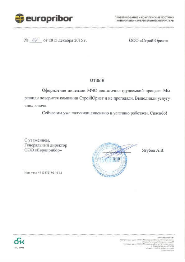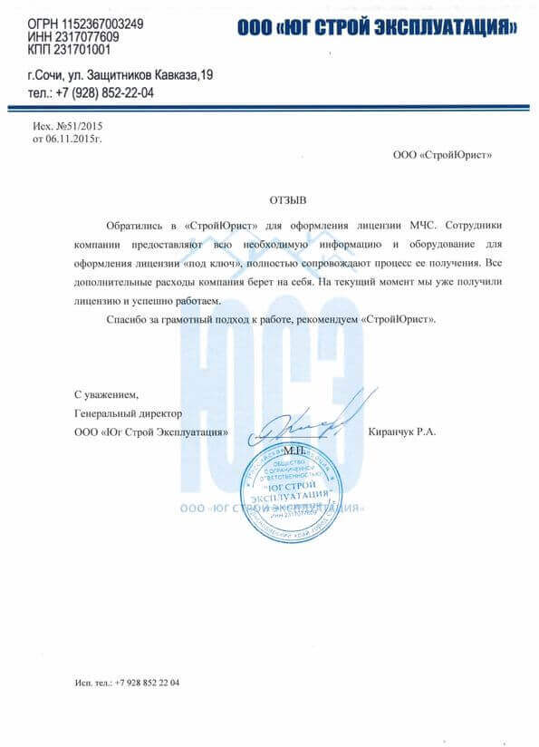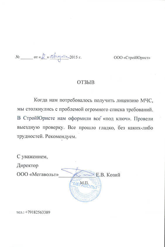 Отзывы клиентов "СтройЮрист" по лицензированию МЧС в Коломне