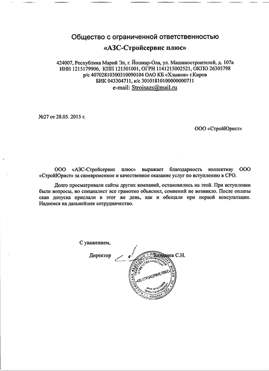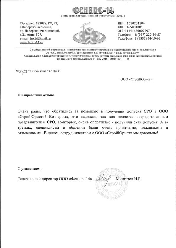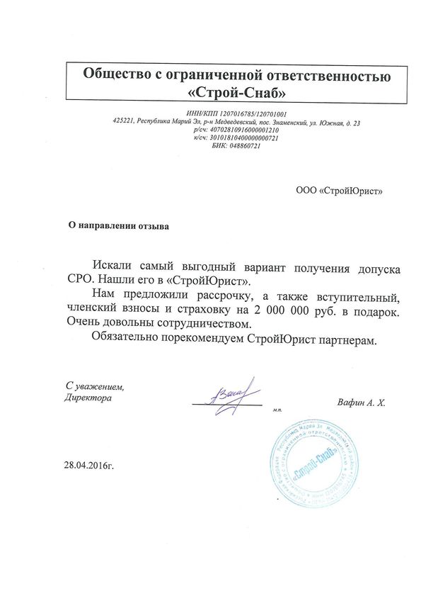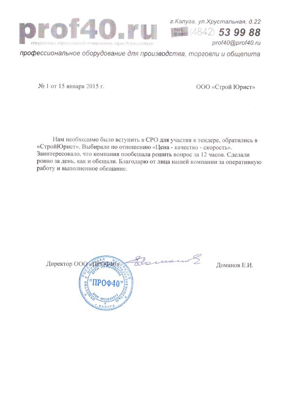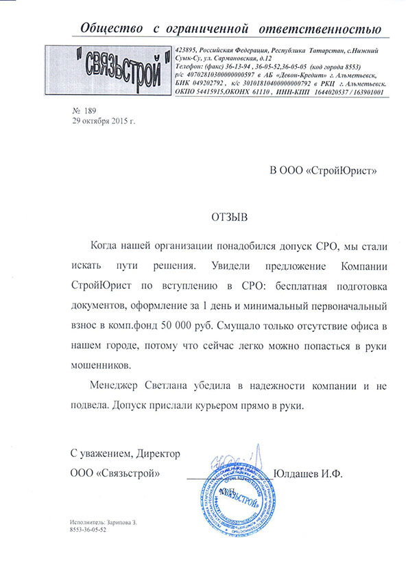 Отзывы клиентов "СтройЮрист" по вступлению в СРО в Коломне