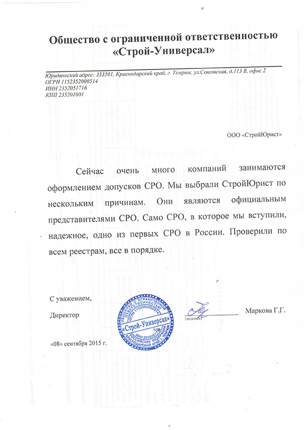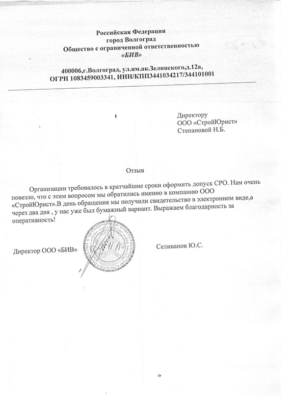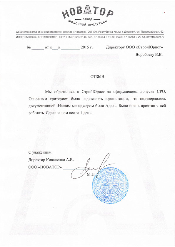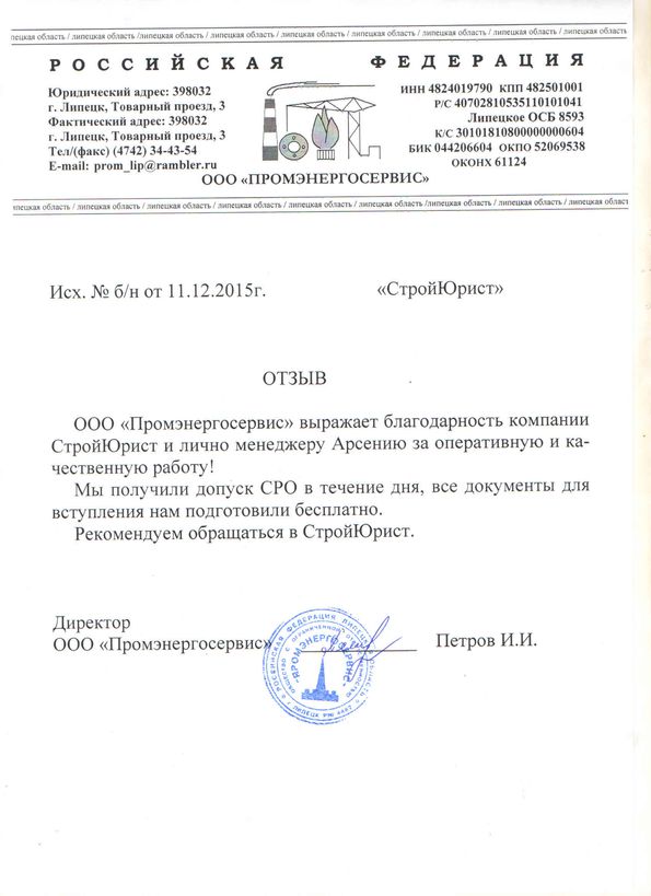 Отзывы клиентов "СтройЮрист" по вступлению в СРО в Коломне