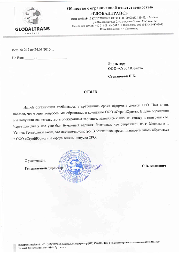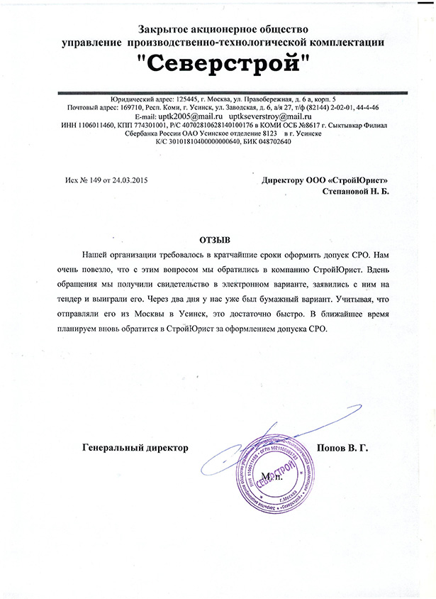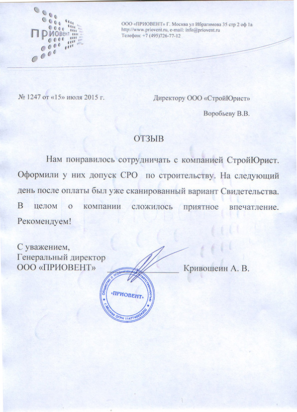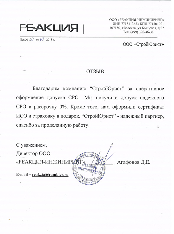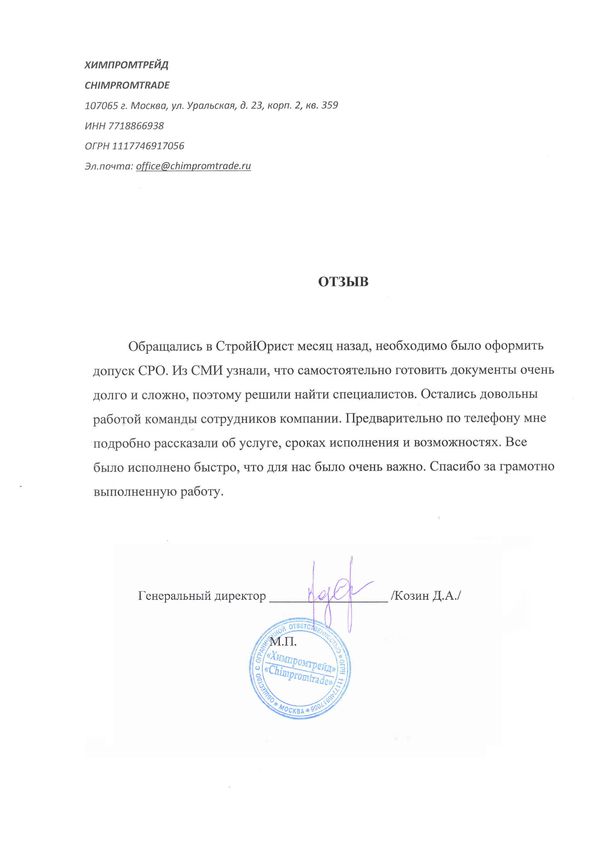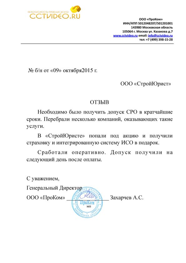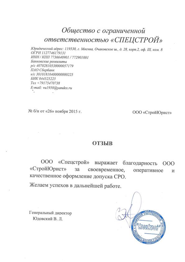 Отзывы клиентов "СтройЮрист" по вступлению в СРО в Коломне