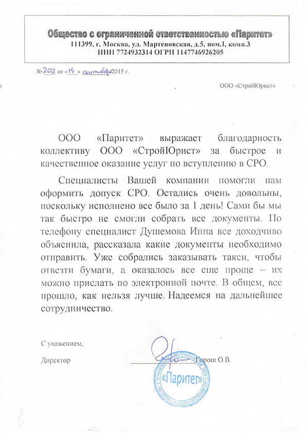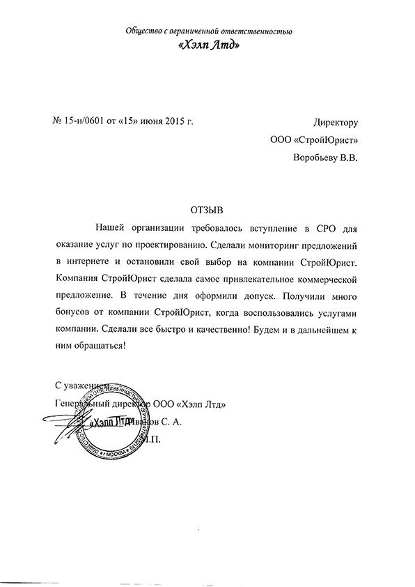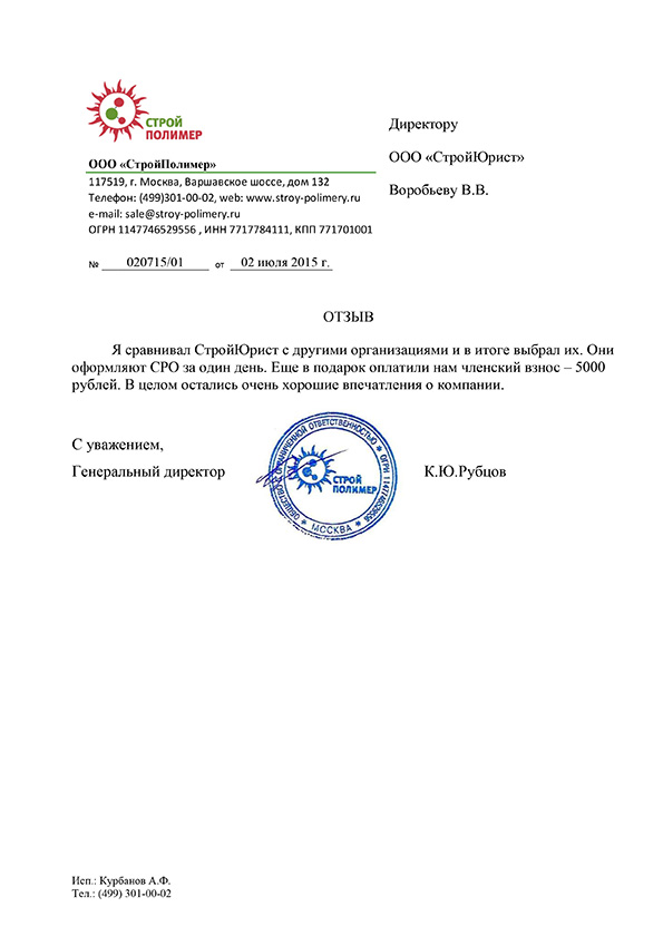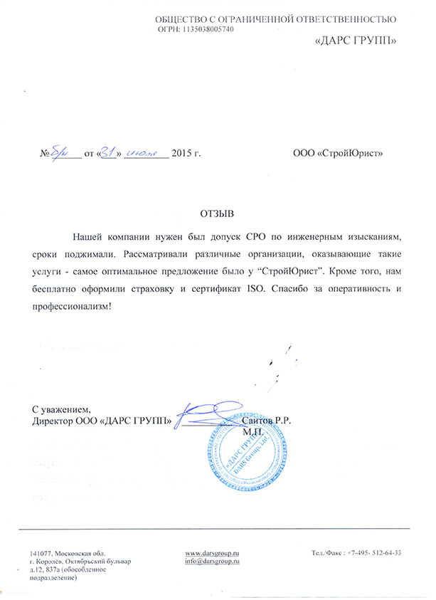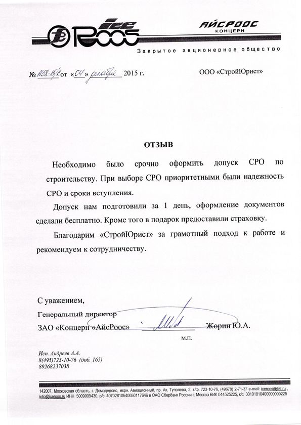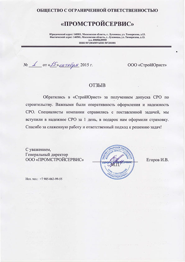 Отзывы клиентов "СтройЮрист" по вступлению в СРО в Коломне