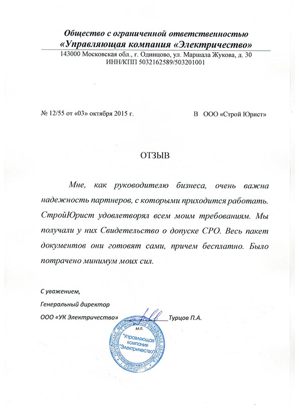 Отзывы клиентов "СтройЮрист" по вступлению в СРО в Коломне