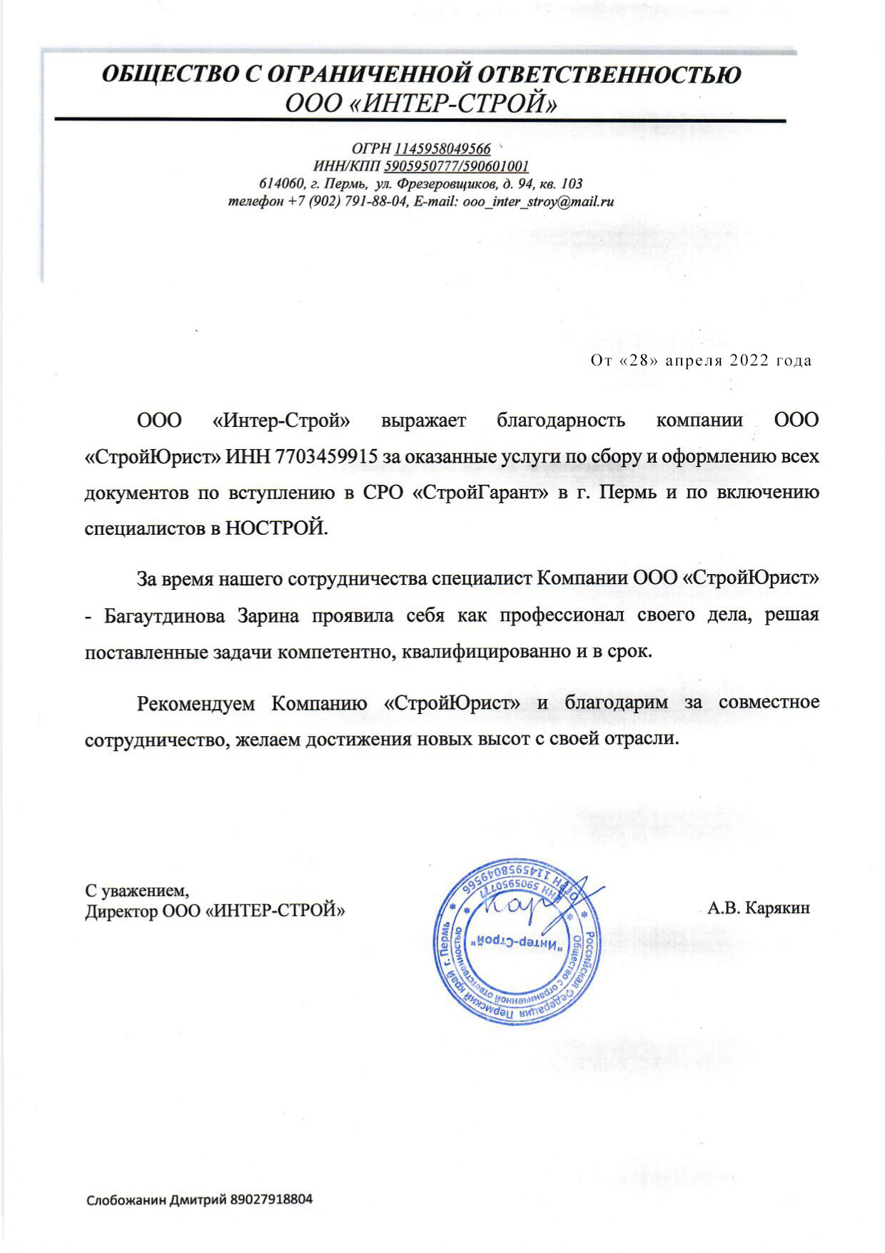 Отзывы клиентов "СтройЮрист" по вступлению в СРО в Коломне