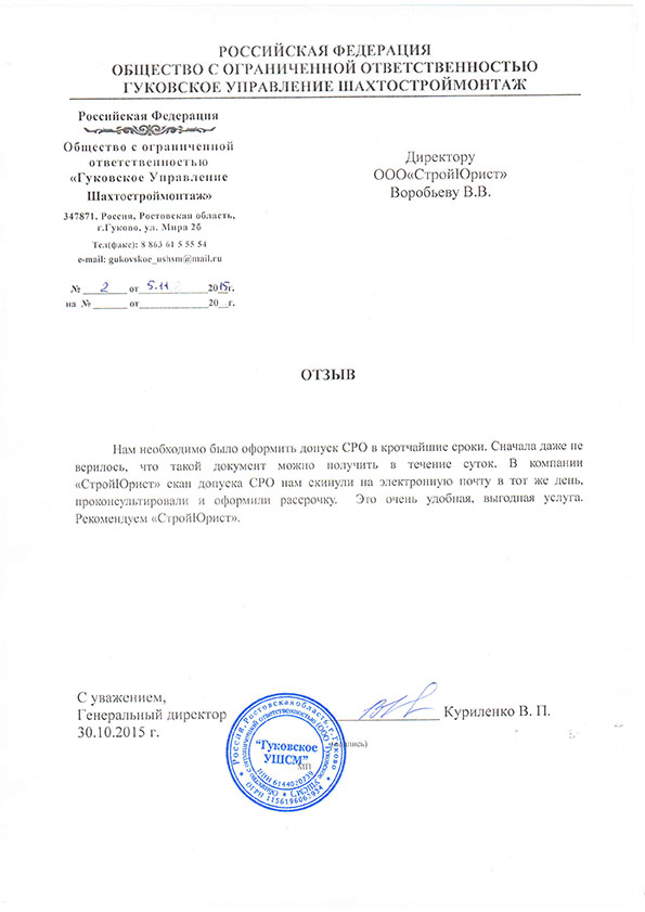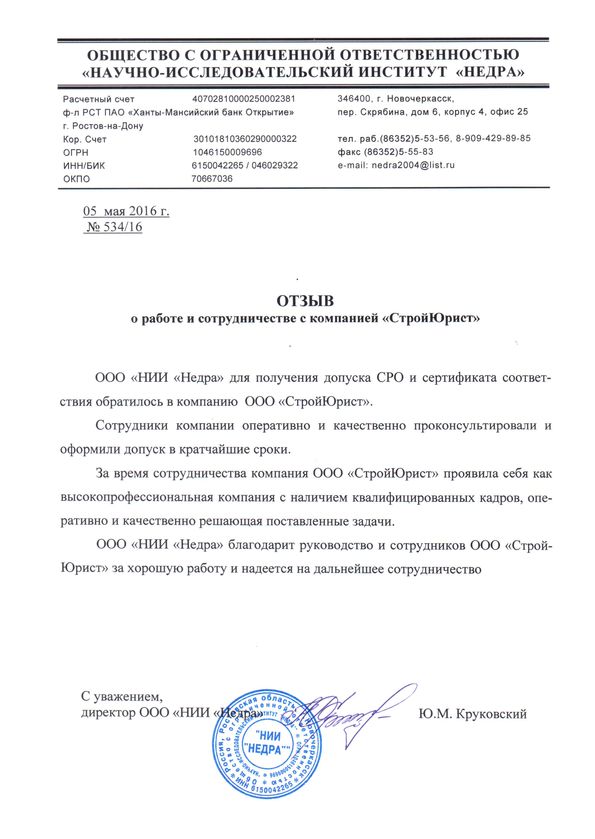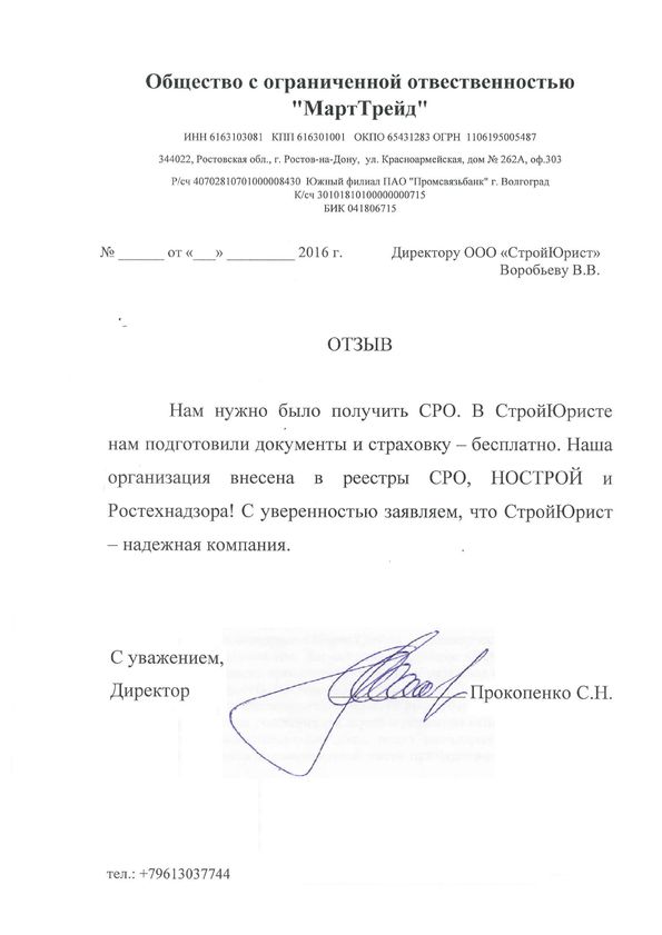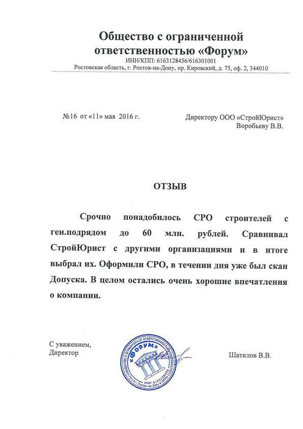 Отзывы клиентов "СтройЮрист" по вступлению в СРО в Коломне