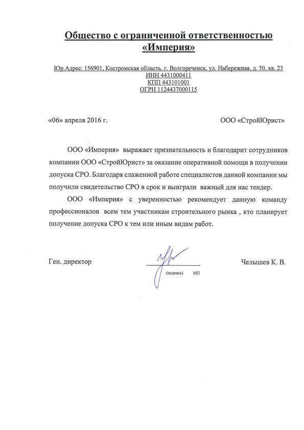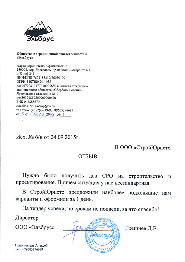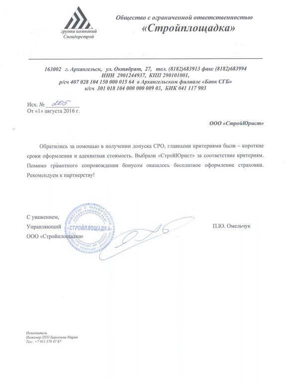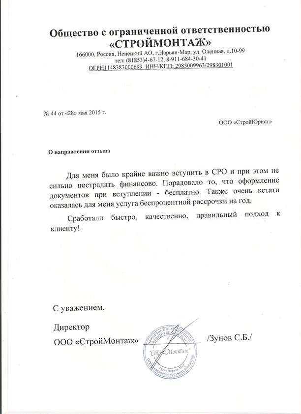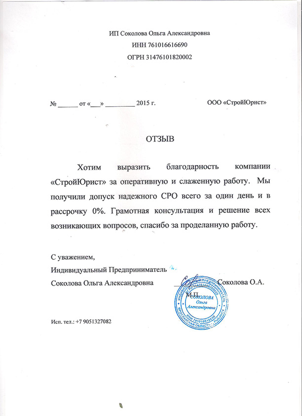 Отзывы клиентов "СтройЮрист" по вступлению в СРО в Коломне