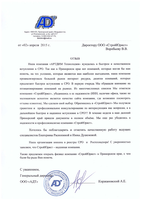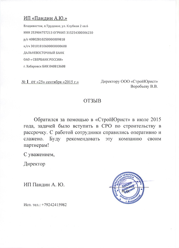 Отзывы клиентов "СтройЮрист" по вступлению в СРО в Коломне