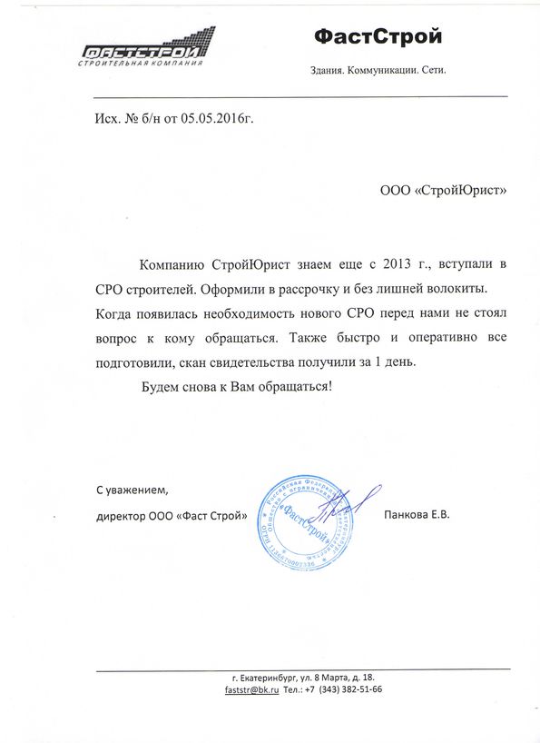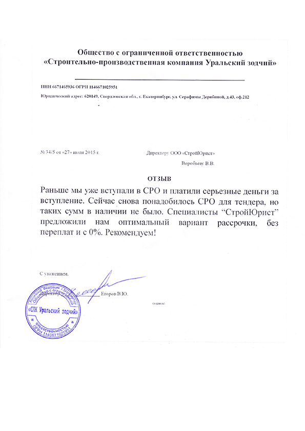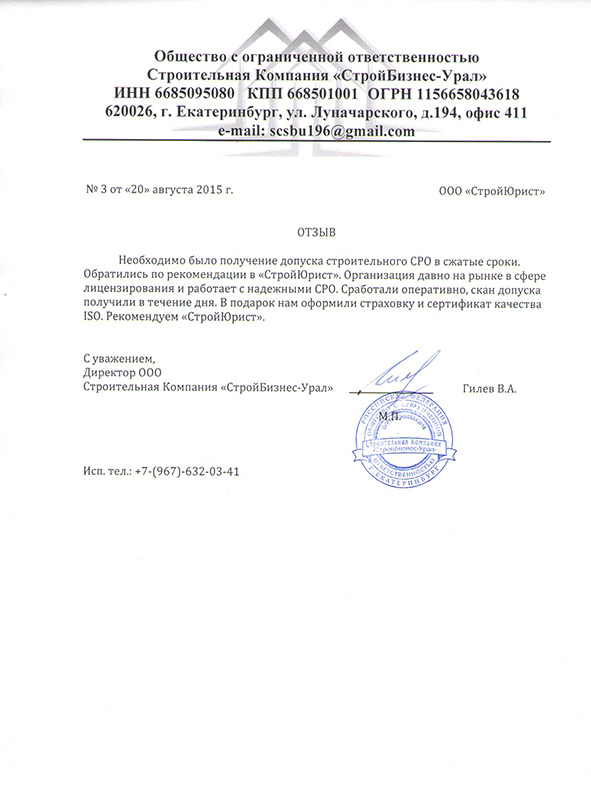 Отзывы клиентов "СтройЮрист" по вступлению в СРО в Коломне