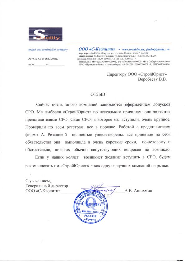 Отзывы клиентов "СтройЮрист" по вступлению в СРО в Коломне