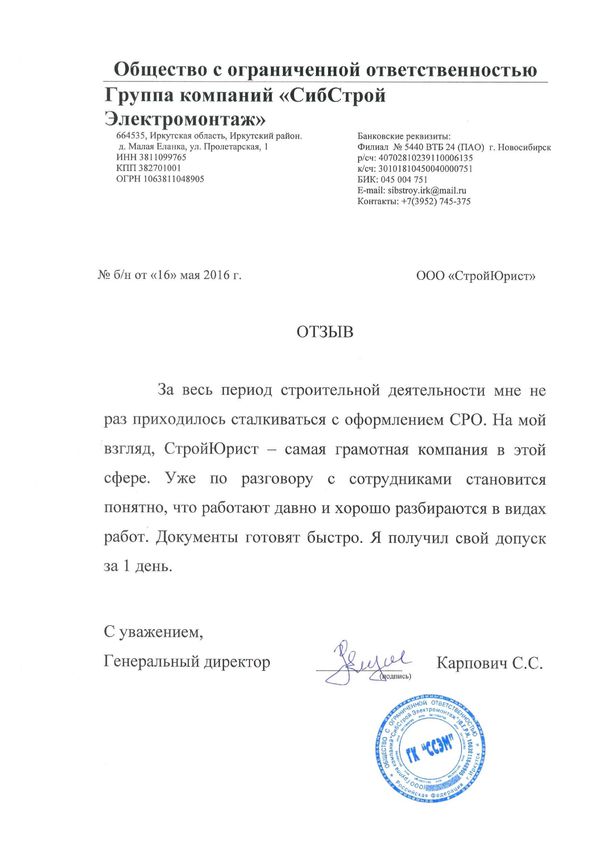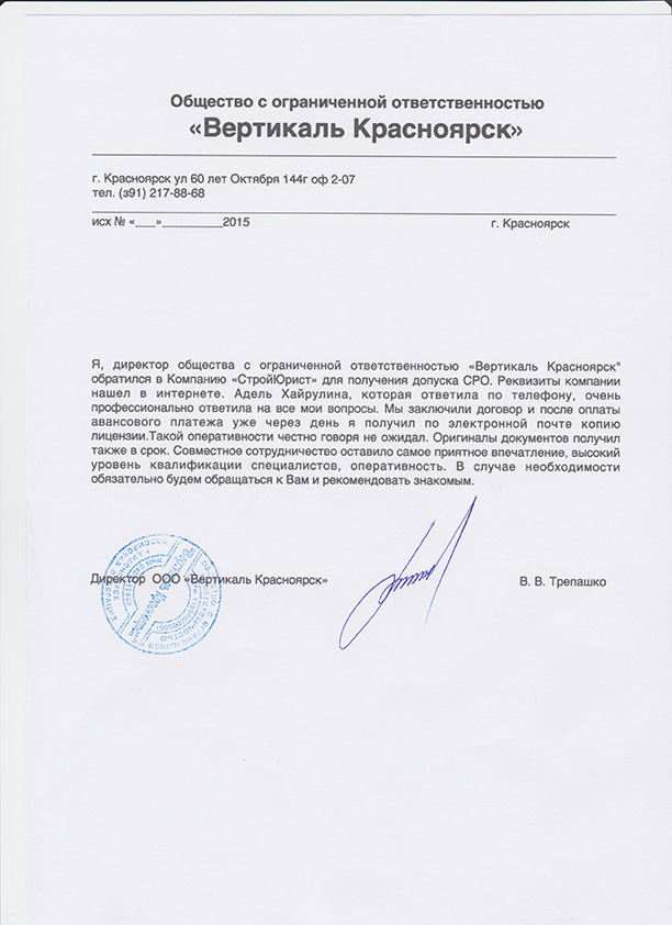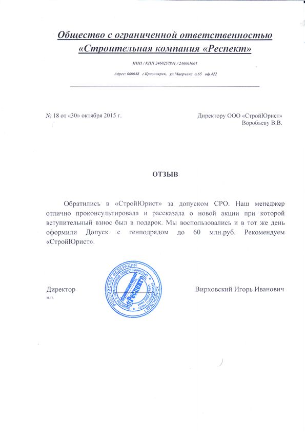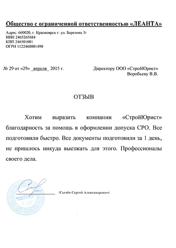 Отзывы клиентов "СтройЮрист" по вступлению в СРО в Коломне