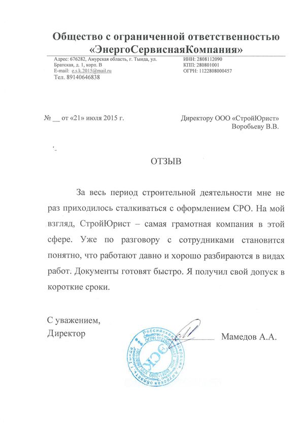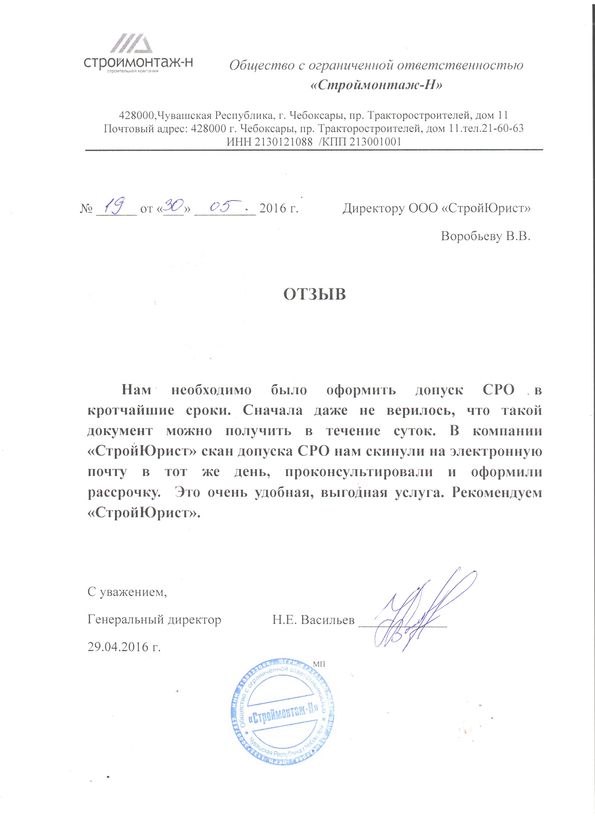 Отзывы клиентов "СтройЮрист" по вступлению в СРО в Коломне
