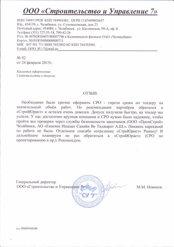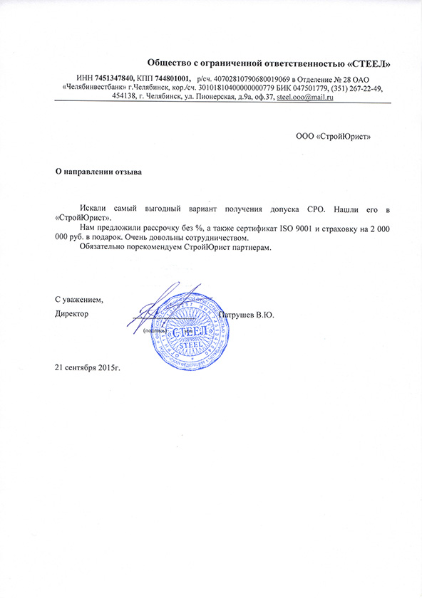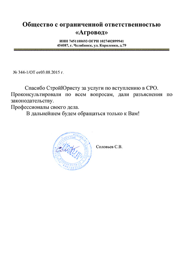 Отзывы клиентов "СтройЮрист" по вступлению в СРО в Коломне