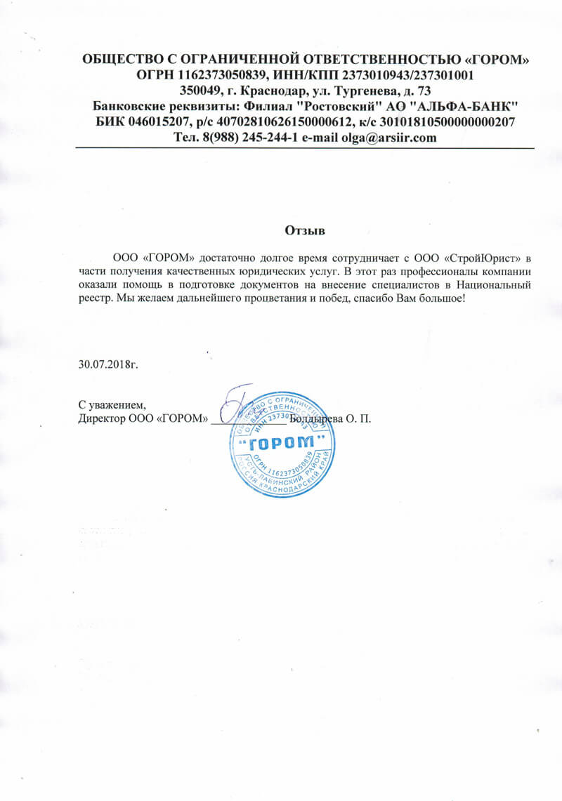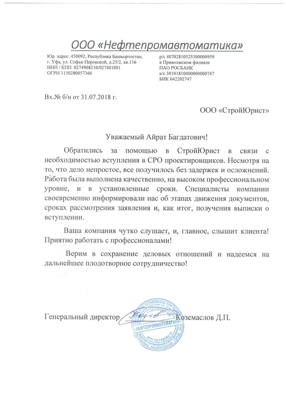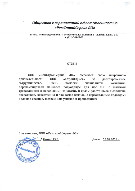 Отзывы клиентов "СтройЮрист" по вступлению в СРО в Коломне