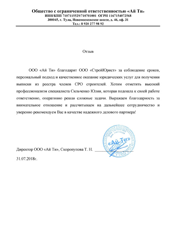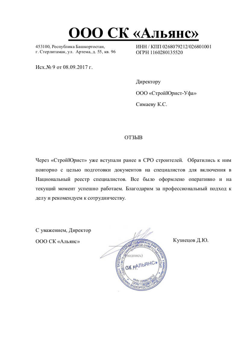 Отзывы клиентов "СтройЮрист" по вступлению в СРО в Коломне
