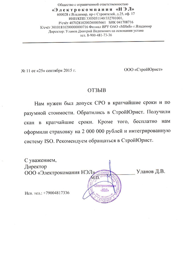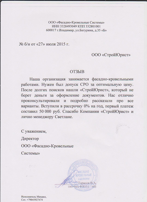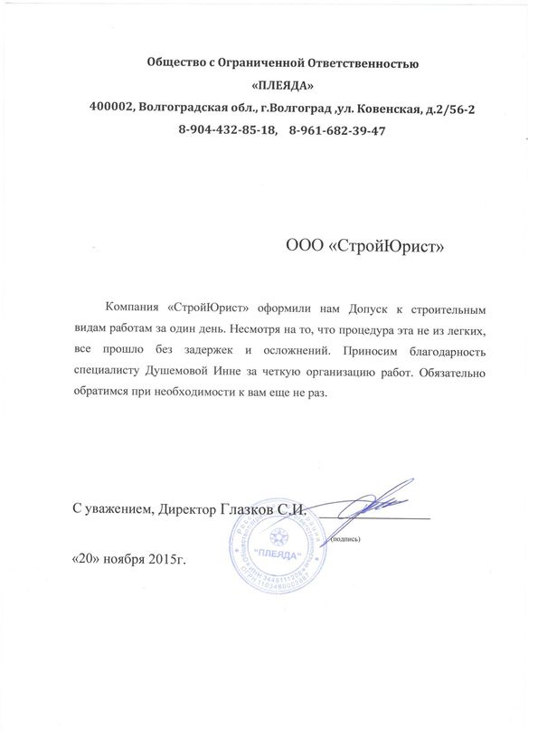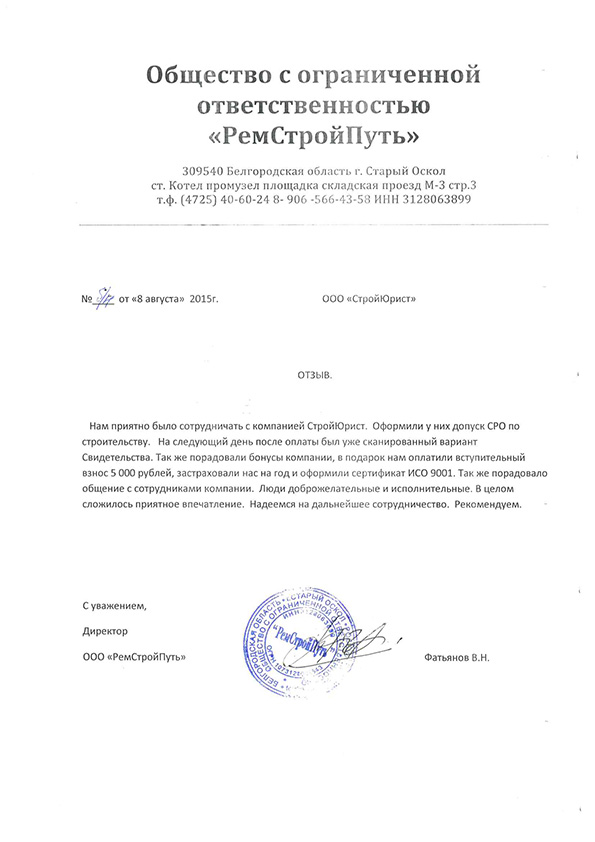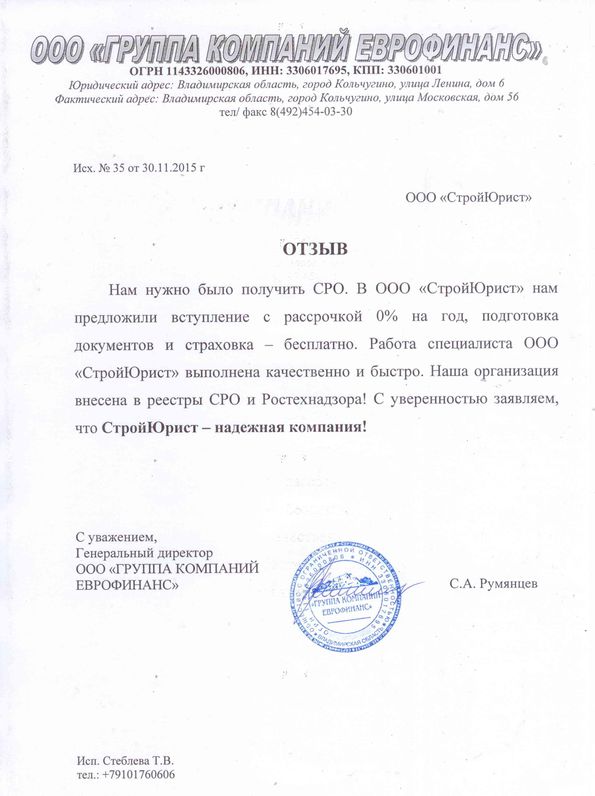 Отзывы клиентов "СтройЮрист" по вступлению в СРО в Коломне